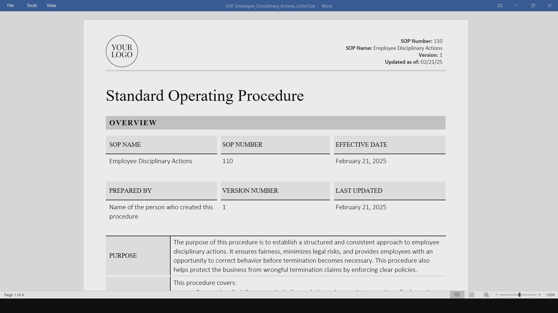 Maintain fairness, legal compliance, and professionalism in your workplace with our Employee Disciplinary Actions SOP Template. This pre-drafted standard operating procedure provides a clear, structured process for handling employee misconduct and performance issues while protecting your business from legal risks. Use this SOP as-is or customize it to fit your organization’s unique requirements.